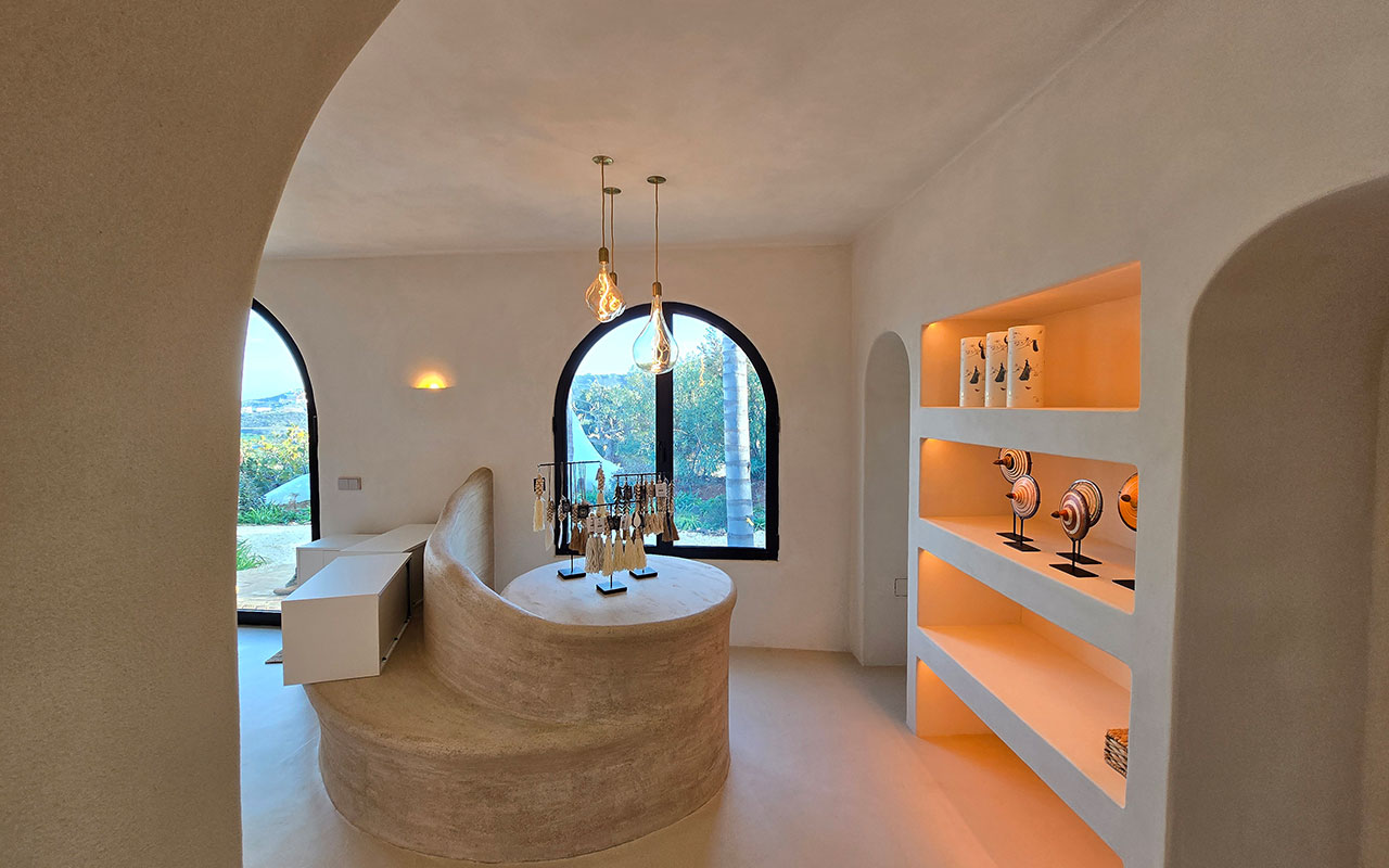 Ici, elle a traité l’ensemble du projet sur supports modernes, extérieurs et intérieurs, béton et bloc béton, avec la gamme de décoration à la chaux Lisbonis®. Pour ce projet, toutes les textures et couleurs sont spécifiques. Elles composent une ambiance minérale, en valorisant le grain de la matière, les ombres, la lumière qui file sur les parois. L’entreprise a développé un registre complet qui valorise le dessin du mobilier. Assises, comptoir, présentoirs, bureau donnent l’impression d’avoir été sculptés dans la masse. Il s’en dégage une impression de force et de sérénité. Ce lieu est fait pour rester dans votre mémoire.